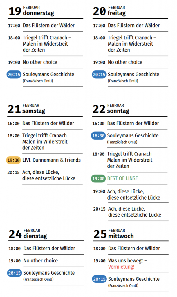 Die aktuellsten Kinofilme und Events der Linse als PDF zum abspeichern.